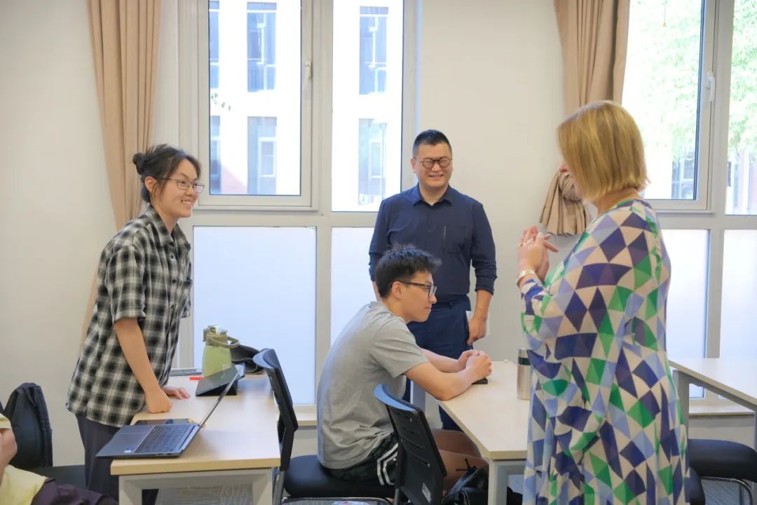 在交流环节,南开大学风险管理与保险学系1996级本科毕业校友阴平、2007级本科毕业校友王磊,南开大学金融学院保险学专业2021级在校本科生张成琰、2022级本科生杨炯硕、富美逸、曹琬清等同学与卡特里娜开展热烈交流。