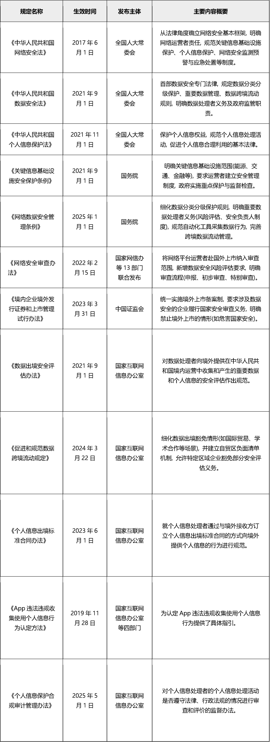 从2020年《网络安全审查办法》将关键信息基础设施运营者(CIIO)纳入审查范围, 到2023年《境内企业境外发行证券和上市管理试行办法》确立备案制下的网络安全、数据安全审查义务, 再到2025年《网络数据安全管理条例》构建覆盖数据全生命周期的分类、分级保护体系, 监管机构逐步搭建了一张贯穿企业上市前备案、上市中审查、上市后监管的全链条数据合规网络。