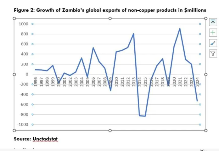 Second, if these upward lines or positive growths were in $ 5 billions annually, I would applaud the private sector. But they’re in small millions and at no point in a year do they ever reach $1billion. These are not numbers that can create the wealth citizens desperately need to fight the war against poverty and its concomitant effects. The period, 1996-2024 covered for this study is almost three decades with lackluster performance of non-copper exports. How long can we keep up appearances of Zambia’s private sector?