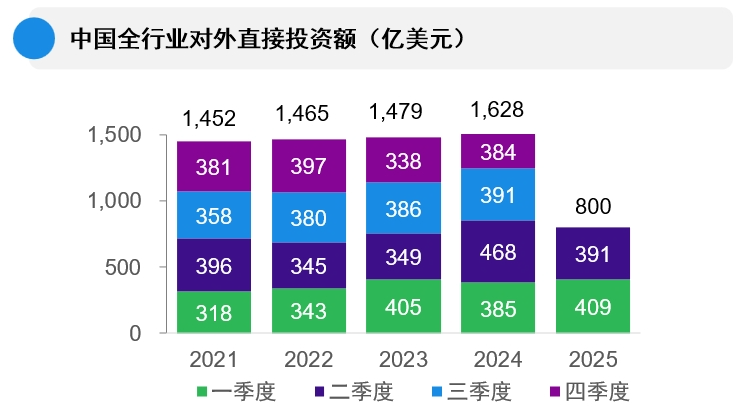 2025年上半年对外直接投资呈现调整态势,对“一带一路”共建国家逆势增长;中企海外并购持续回暖。