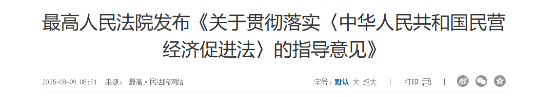 On August 8, 2025, China's highest judicial authority—the Supreme People's Court (SPC)—issued a comprehensive set of judicial guidelines to enforce the newly enacted Private Sector Promotion Law. This move marks a watershed moment in China's ongoing legal reform, reflecting a resolute commitment to creating a transparent, fair, and predictable business environment for private enterprises. For foreign investors, multinational corporations, legal and financial service providers, this initiative signals enhanced judicial backing that addresses long-standing challenges such as market access barriers, financing constraints, intellectual property protection, and dispute resolution inefficiencies.