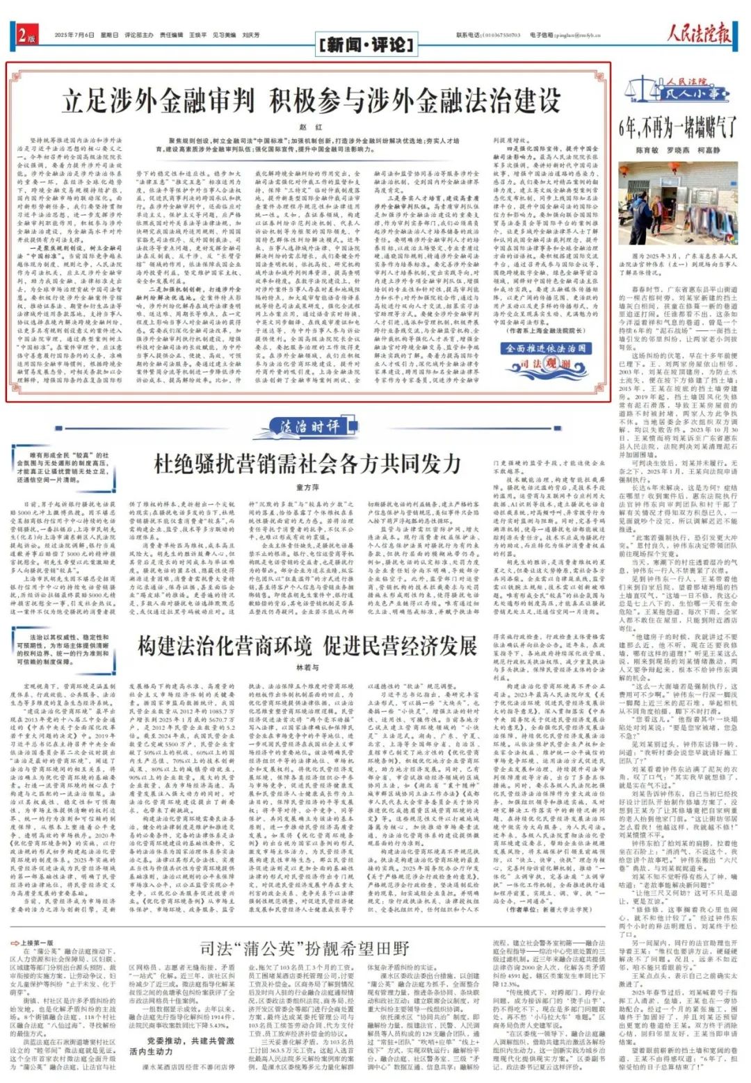 7月6日,《人民法院報》刊登了由上海金融法院黨組書記、院長趙紅撰寫的《立足涉外金融審判 積極參與涉外金融法治建設》壹文,該文從聚焦規則建設、加強機制創新、夯實人才培育、強化國際宣傳等四個方面闡述了如何全面貫徹落實全國高級法院院長會議精神,進壹步發揮涉外金融審判職能作用,著力提升涉外司法效能的思考,現予以轉發。