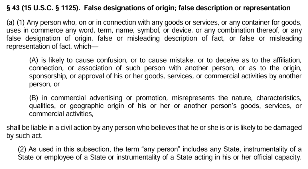图:《兰哈姆法》第43(a)条原文