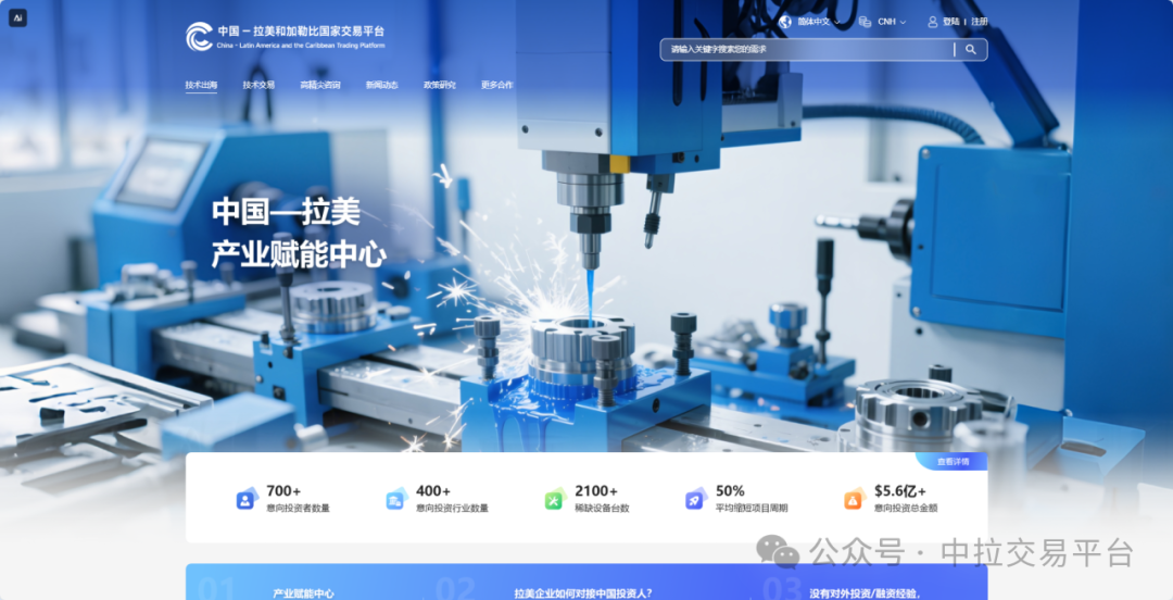 中拉交易平台技术交易中心是国内唯一面向拉美地区的技术交易平台,致力于推动产业链深度协同的核心引擎,聚焦拉美制造业本地化需求与中国产业出海的系统性对接。平台以“技术+设备+资本”为主线,打通从供需匹配到项目执行的全链条闭环。通过结构化对接机制与全周期专业支持,推动技术合作从“谈项目”转向“落项目”,实现与拉美企业“能力共建”的合作升级。