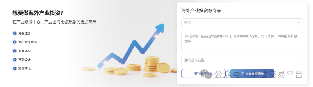 也可以主动浏览中方产业投资意向,并通过平台进行对接
