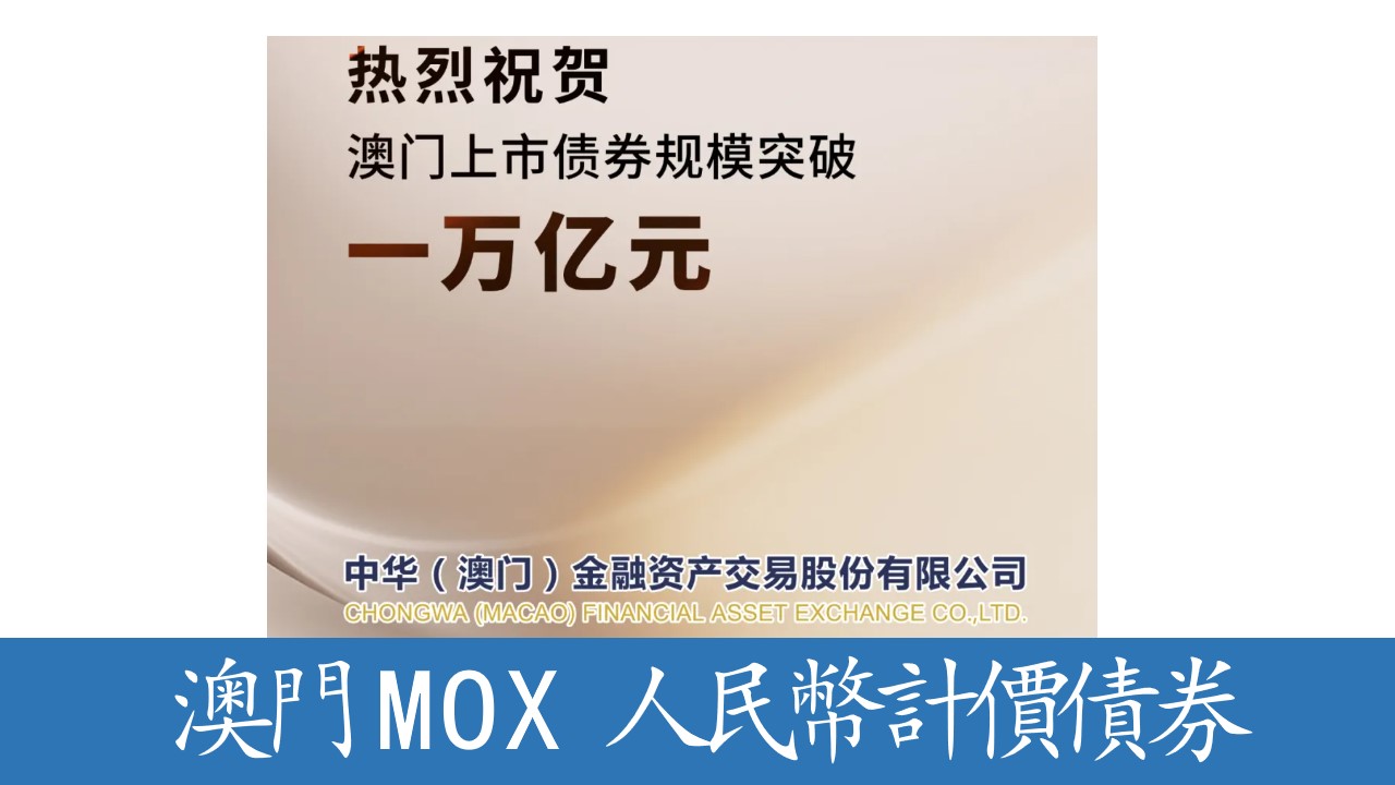 據中華(澳門)金融資產交易股份有限公司(MOX)有關統計,在MOX上市的債券規模已突破萬億元。從“零起步”到“破萬億”,標誌著澳門債券市場從新生到成熟的關鍵躍升。