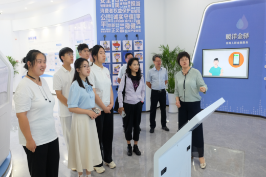 7月21日下午,实践队一行首站来到太保产险山东分公司进行走访调研。太保产险省公司对实践队的来访做了精心安排,调研活动包括“金融教育与服务展厅”参观以及“科技赋能农业保险高质量发展”专题调研座谈会。
