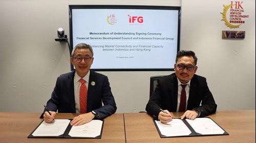 Hong Kong, September 10, 2025 – The Financial Services Development Council (FSDC) and the PT Bahana Pembinaan Usaha Indonesia (Persero), operating under the Indonesia Financial Group (IFG) brand, today signed a Memorandum of Understanding (MoU) to strengthen cooperation between Hong Kong and Indonesia. This partnership aims to foster seamless connectivity between the two financial markets, deepen cross-border collaboration and drive growth across diverse financial sectors.