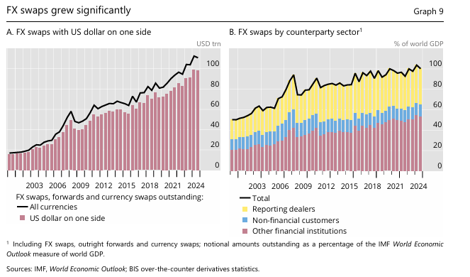 Maechler warned that although the financial system has so far acted as an effective buffer, the high degree of global financial interconnectedness is itself a double-edged sword. Soaring cross-border bond holdings and the massive $111 trillion (of which $98 trillion involves the US dollar) foreign exchange derivatives market (Graphs 8 & 9) create an extremely complex financial network. This means market risk sentiment could quickly reverse due to negative news and transmit rapidly across borders through these channels. Currently lofty asset valuations (e.g., high-yield bond spreads near historical lows) suggest near-perfect market pricing. Should financial conditions tighten unexpectedly for any reason (such as worsening inflation expectations or a weaker growth outlook), underlying economic vulnerabilities could be quickly exposed and amplified, creating a negative feedback loop.