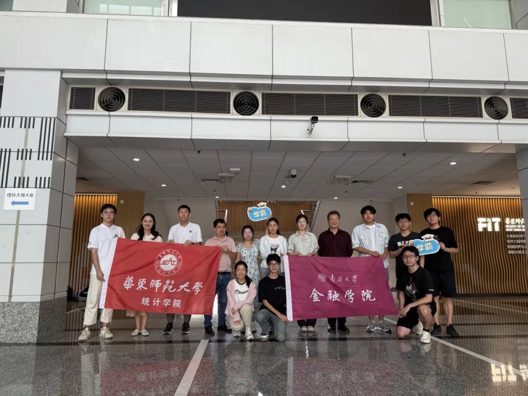 8 月 26 日上午,实践队到访华东师范大学普陀校区,开启两校学科建设交流。在学生代表的带领下,实践队参观了群贤堂、思群堂等历史建筑,感受丽娃河、梧桐树大道构成的人文校园环境。座谈环节,华东师范大学统计学院钱林义教授、李丹萍教授重点介绍了依托统计学 “世界一流学科” 优势推动精算教育的成果 —— 已开设《AI + 投资学》课程,正研发《AI + 寿险精算》,通过 R 语言、Python 等工具实现精算模型可视化,破解传统教学 “抽象难懂” 的痛点。