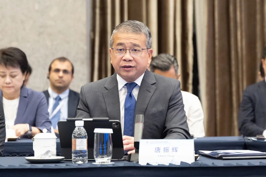 唐振輝說,今年對新加坡和中國而言具有特殊意義,我們共同慶祝了建交35周年。儘管全球形勢依然充滿不確定性,但新中夥伴關係展現了韌性和新進展。新加坡和上海作為全球金融和創新中心,可以在共同感興趣的領域開展合作。希望深化數字公用事業、金融服務、科技創新和城市更新方面合作,為兩地企業降本增效,促進金融市場連通與合作,攜手推進科技與創新,並共同探索未來城市形態。希望促進法律、醫療、藝術和文化遺產等領域的交流合作、互學互鑒。願借助滬新全面合作理事會這一重要且有效的平臺,促進新加坡與上海的合作領域持續拓寬、不斷深化。期待兩地共同努力,推動合作進入新篇章。