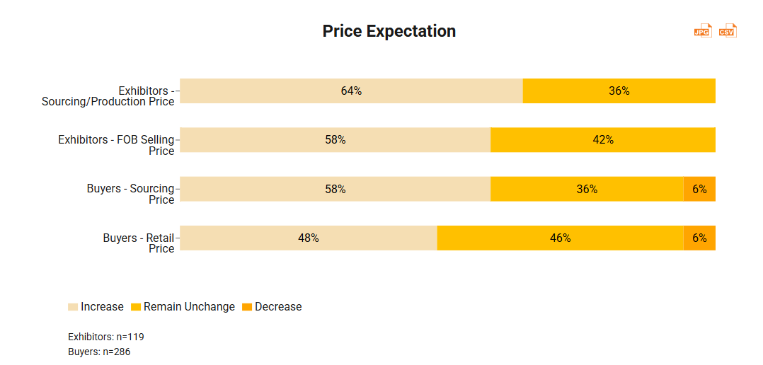 To keep track of the current state of the garment and fashion industry and the latest views on market prospects, the HKTDC conducted a survey involving 405 buyers and exhibitors at the event. The overall sentiment among respondents is positive, with 56% respondents expecting sales growth over the next 12 to 24 months.