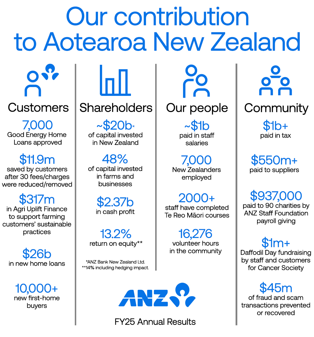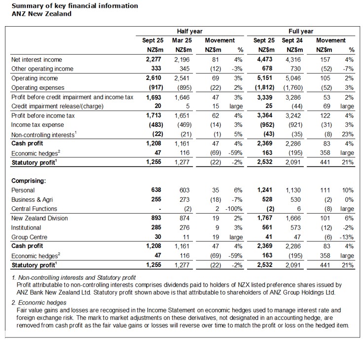 澳新新西兰[1](澳新银行)今天报告了一笔现金[2]截至2025年9月30日的12个月内,税后净利润(NPAT)为23.69亿美元,较上一年增长4%。